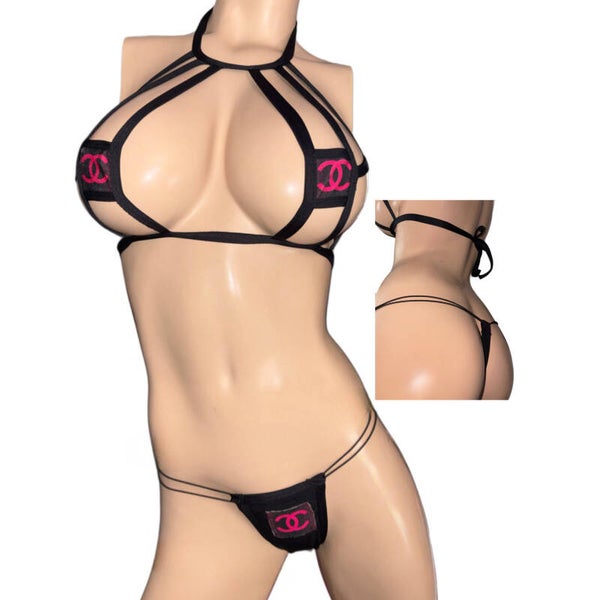 Sexy top cage style black and thong size small medium. Lycra spandex fabric
