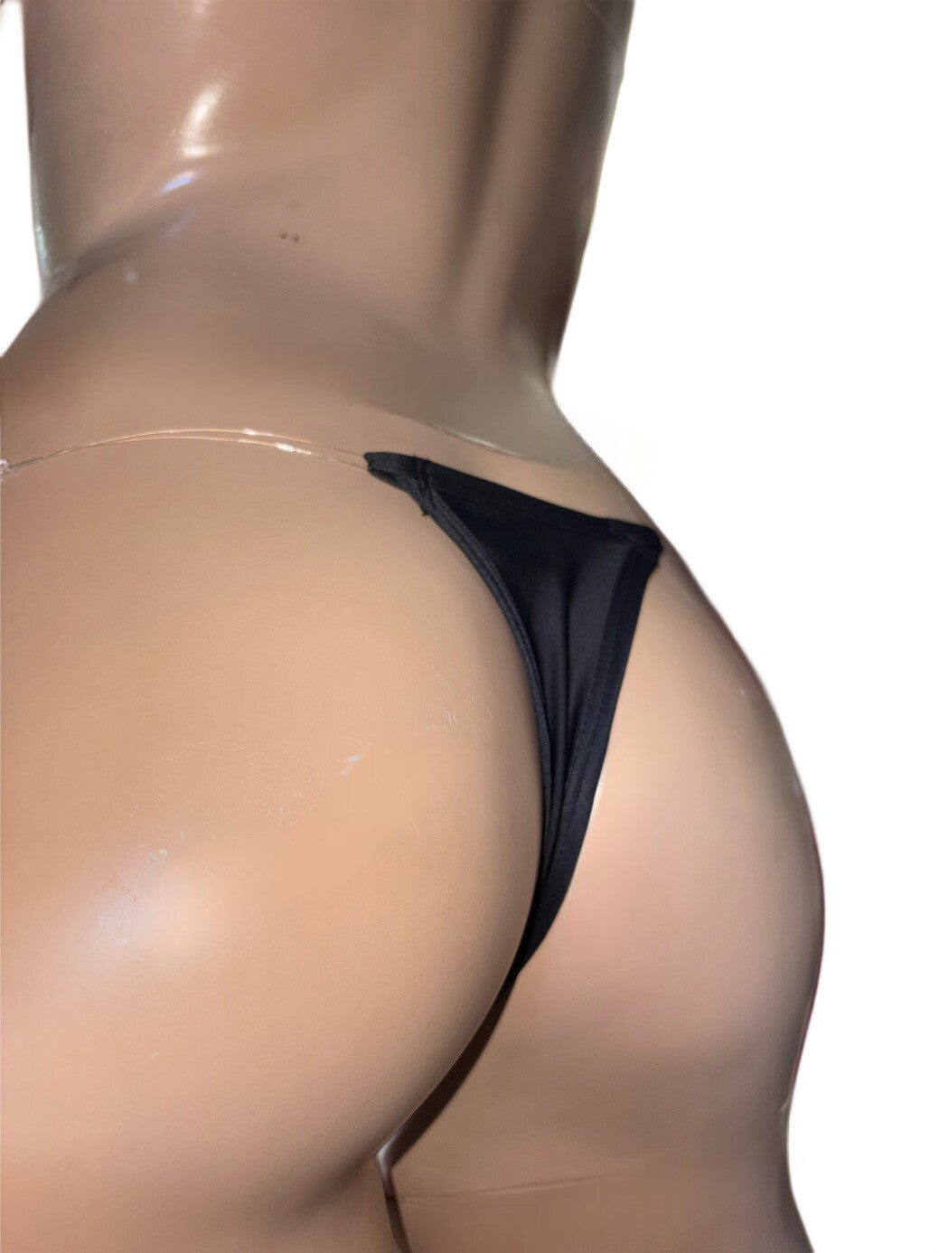 Sexy mini triangle top nipple cover with clear elastic and thong triangle back with clear elastic. Size small medium. Lycra spandex fabric. Made in America