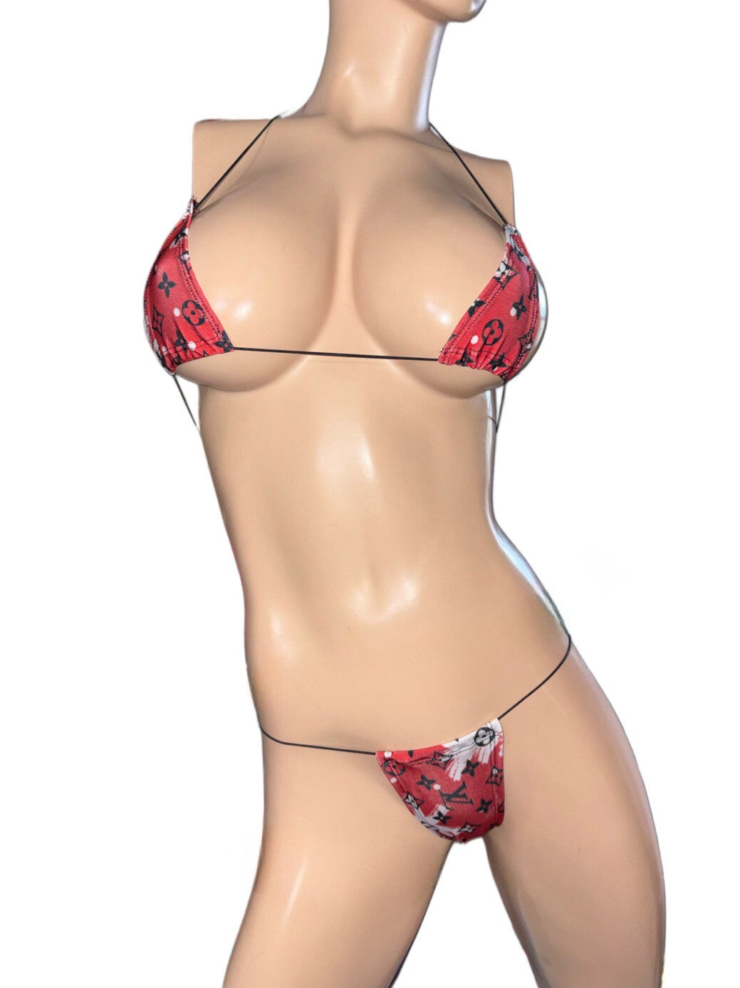 Sexy red print thong with elastic cord black size medium.Tiny triangle top . Red print . Lycra spandex fabric.